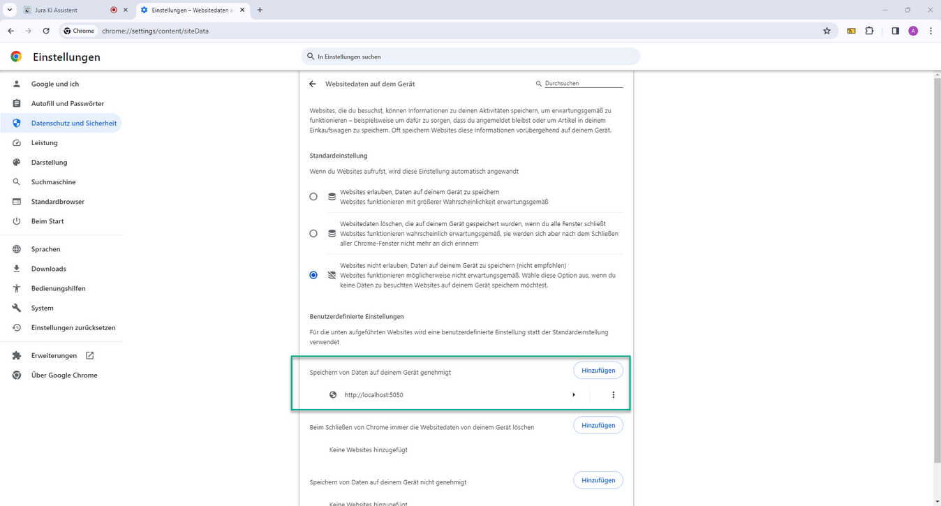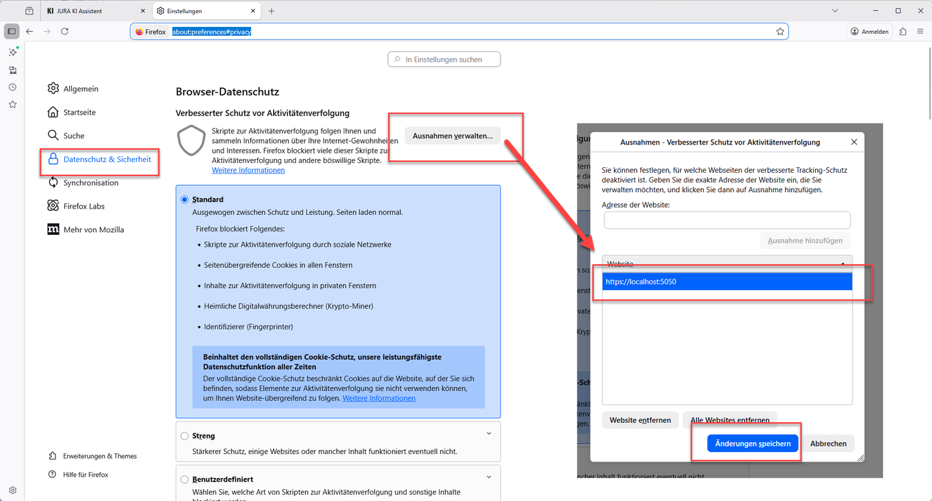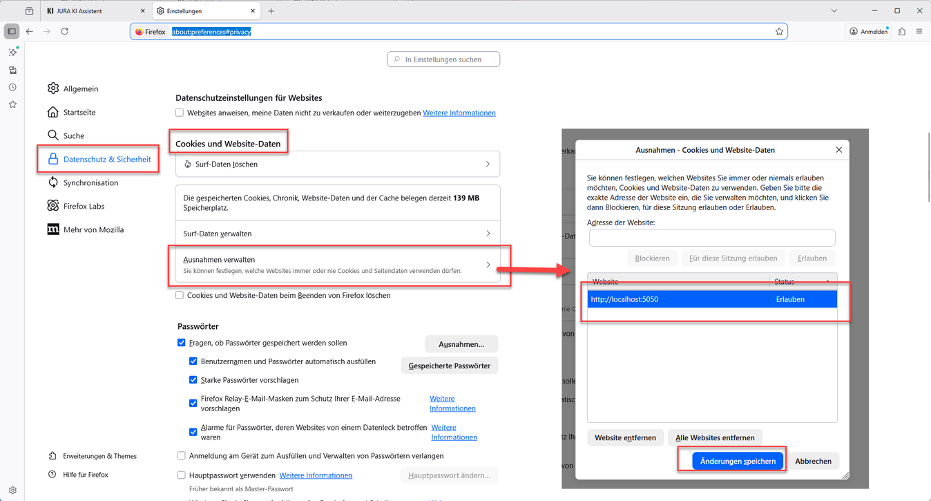 5. Starten Sie den JURA KI Assistenten neu.