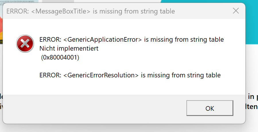 Die Installation kann in diesem Fall zwar gestartet werden, einzelne Programmkomponenten lassen sich jedoch nicht korrekt ausführen, was zu der gezeigten Fehlermeldung führt.